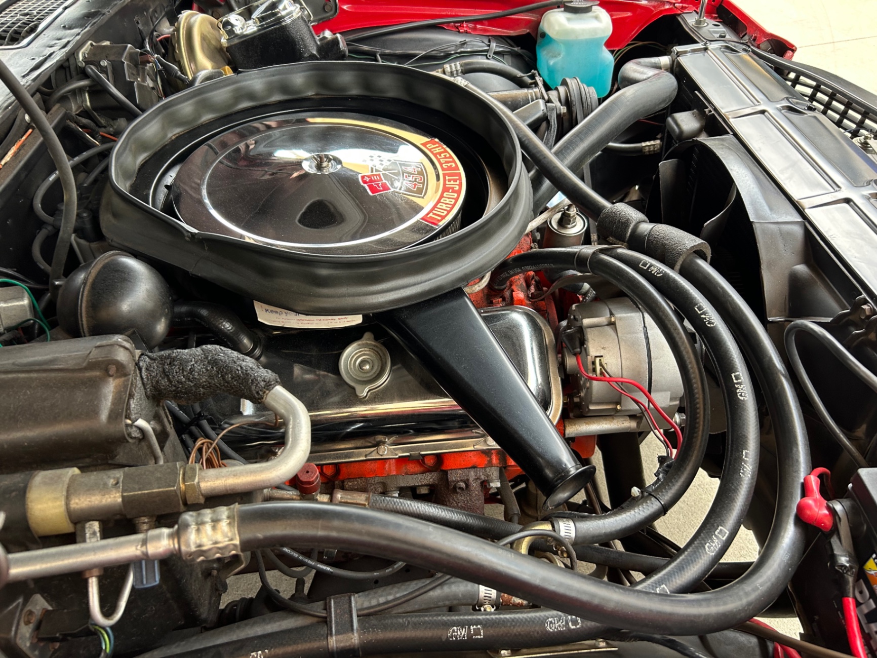 The car underwent a meticulous frame-off restoration, showcasing its original LS5 engine with correct factory components like the four-barrel carburetor and chrome valve covers. It is equipped with modern enhancements such as air conditioning, power steering, and power brakes, alongside F-41 racing suspension for an exhilarating driving experience.