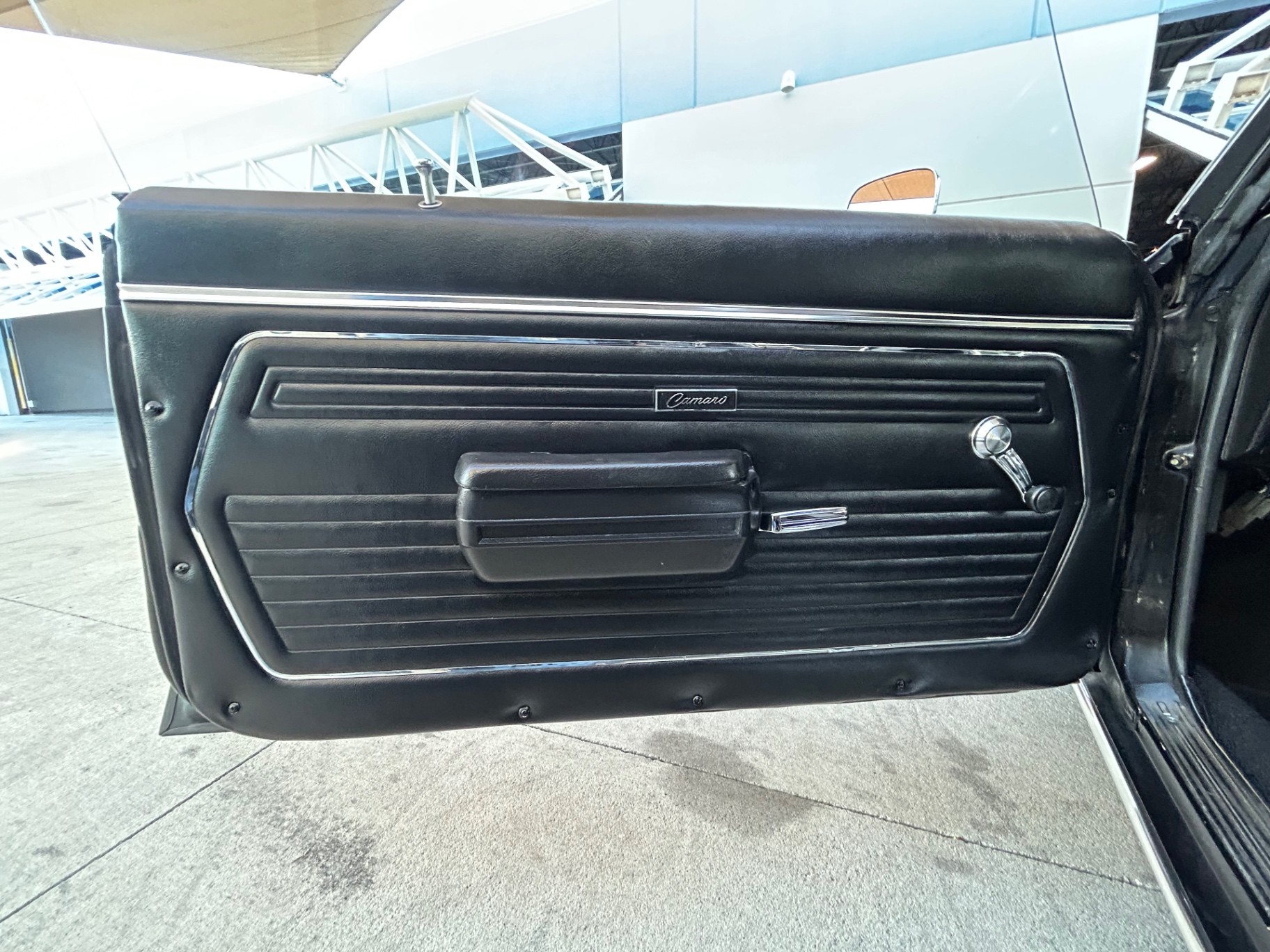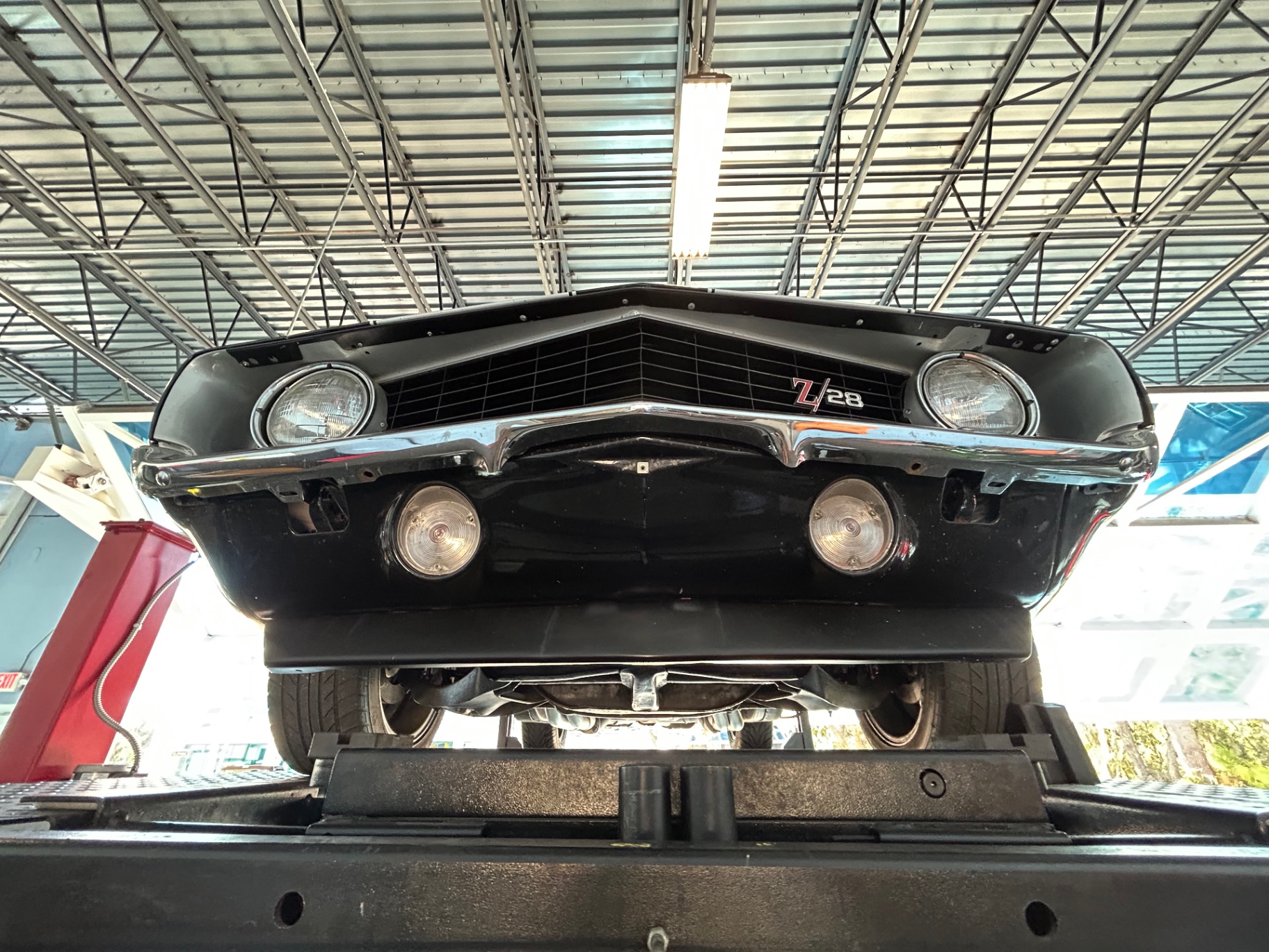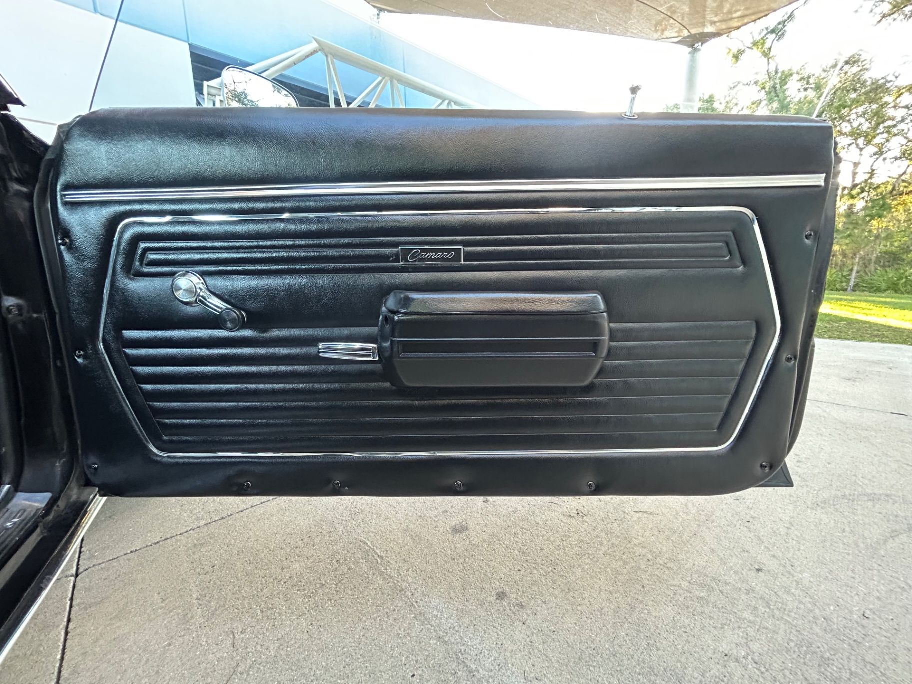 The 1969 Camaro Z28 Black Tribute stands out with its sleek black paint and contrasting white Z28 stripes, making a bold statement on the road. Beneath the hood lies a 350 cubic inch engine, paired with a 4-speed automatic transmission that delivers a smooth driving experience. The engine bay showcases performance enhancements, including an aluminum manifold and black tube headers, complemented by a chrome open air cleaner with a distinctive red decal.