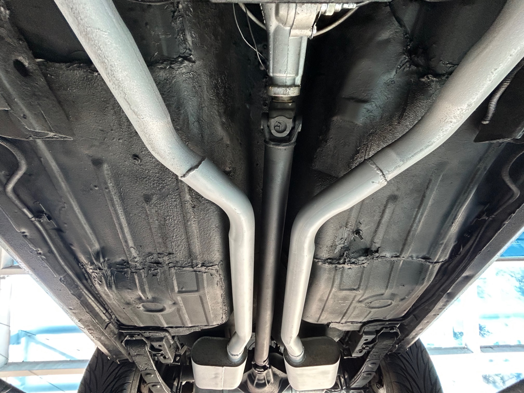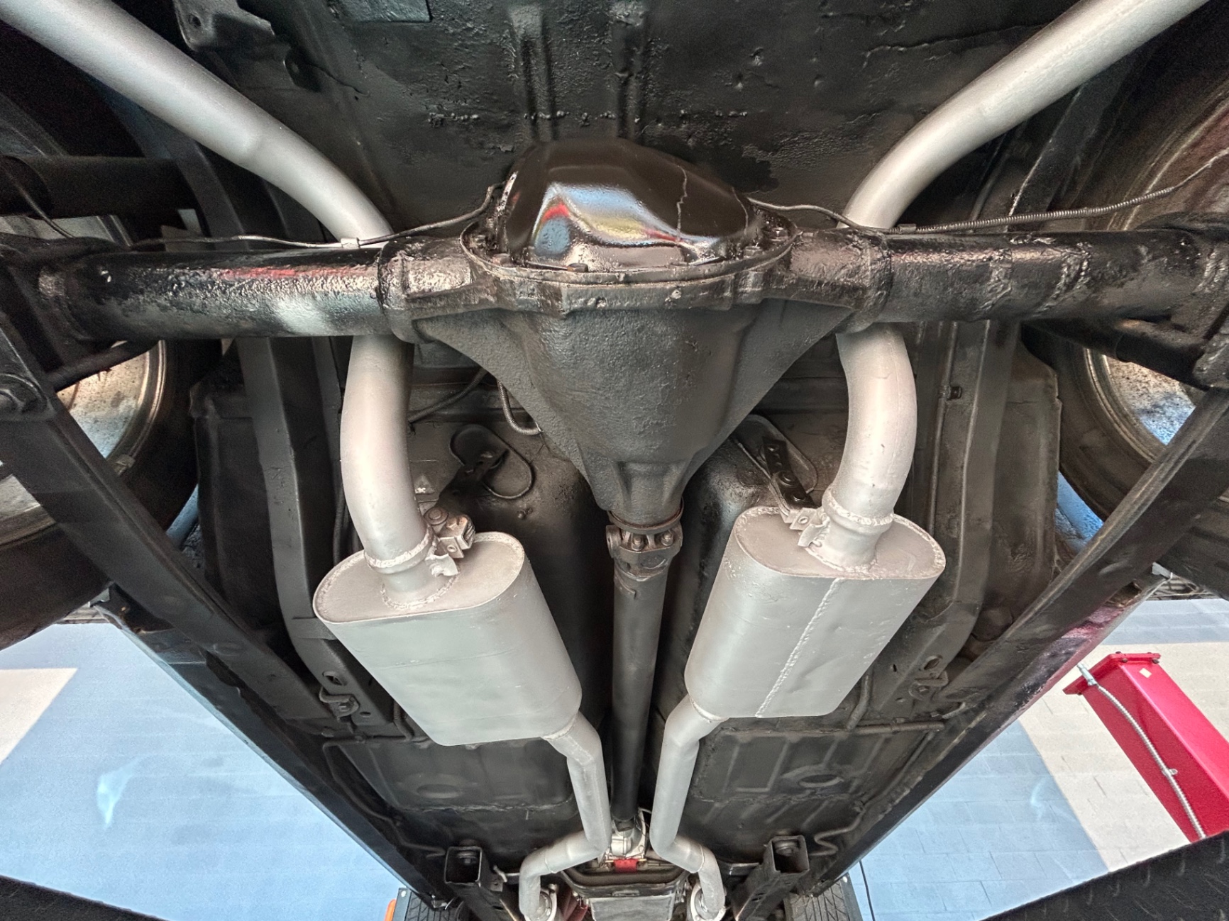 Inside, the interior features striking black and white Houndstooth upholstery on both the front bucket seats and the rear seat. The dashboard and center console are well-maintained, housing factory gauges alongside a chrome 4-speed automatic shifter. The black carpet and sport steering wheel add to the car’s classic appeal.